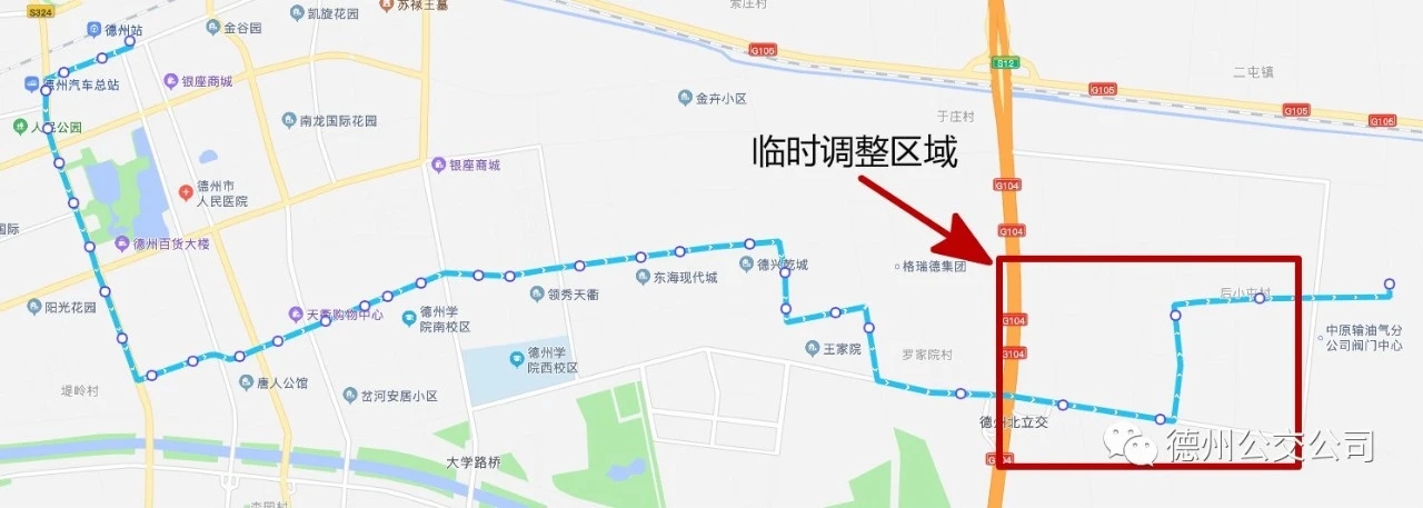 由于天衢工業(yè)園前小屯東西大街道路施工,16路線公交車無(wú)法通行,臨時(shí)調(diào)整16路線由火車站公交換乘中心沿迎賓大道、東風(fēng)路、德興大道、格瑞德路、德賢大街至永興碳素北側(cè)恒東路至前小屯至后小屯至御園社區(qū)原線路運(yùn)行,取消站點(diǎn)德州榮光生物科技有限公司、前小屯。